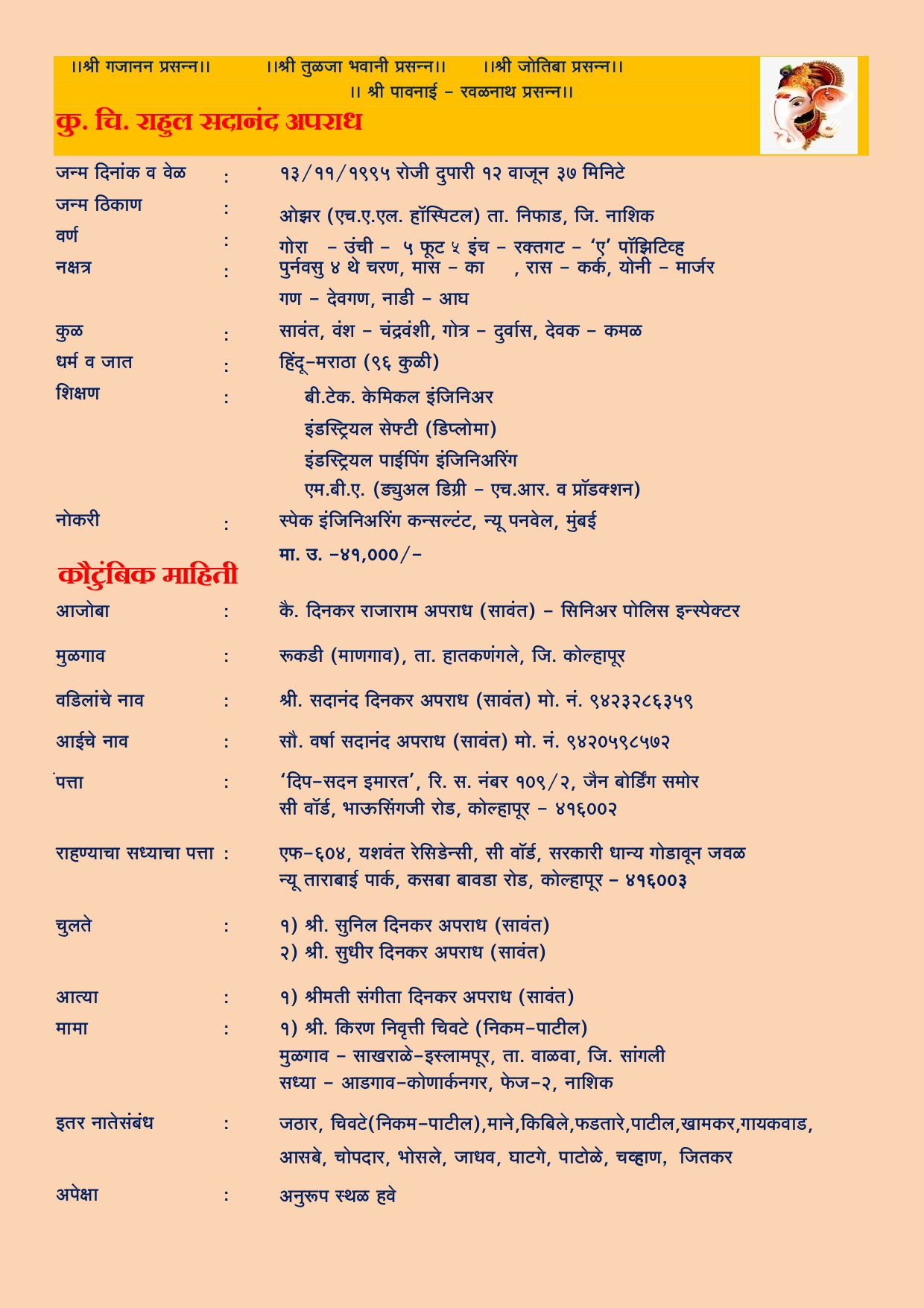 श्री प्रकाश नानासाहेब आव्हाळे