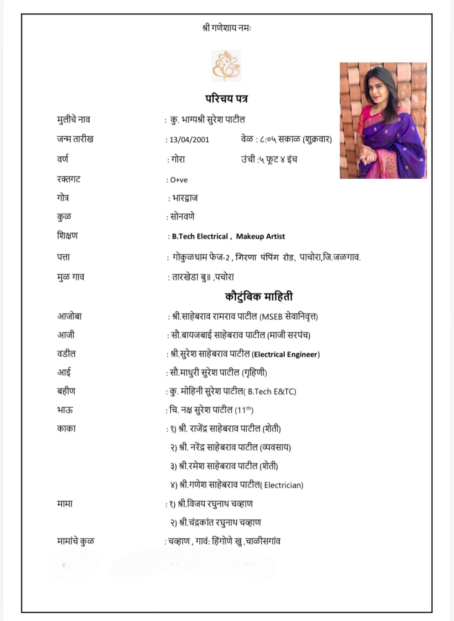 कु भाग्यश्री सुरेश पाटील