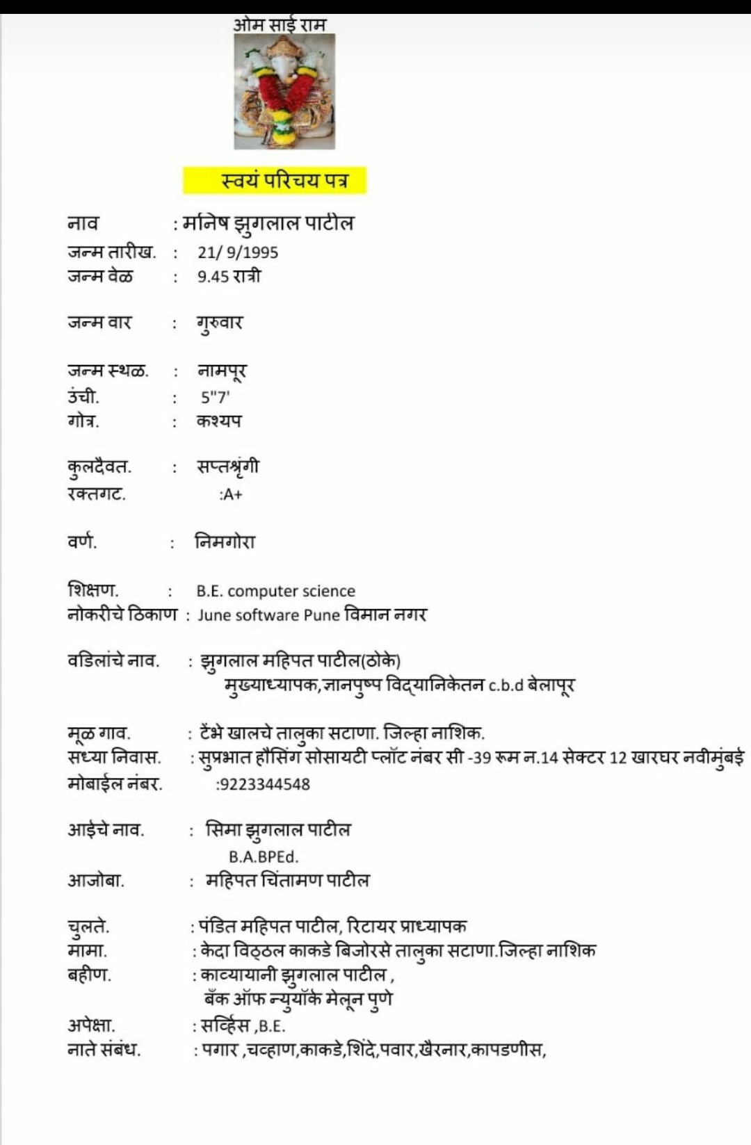 श्री प्रकाश नानासाहेब आव्हाळे